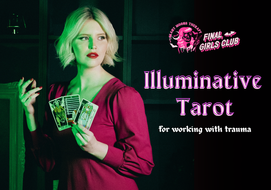 The Final Girls Club is an online series of programs, services, and workshops. This club is for the spooky ghouls looking to explore their mental health through things like psychoeducation, tarot, dreams, experiences through the veil, horror, and more. Offerings from the Final Girls Club are not a substitute for psychotherapy treatment.
